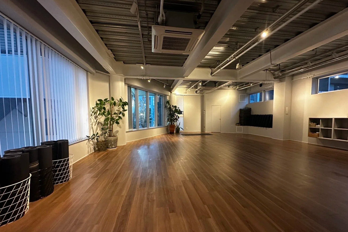 自然光の美しいスタイリッシュなヨガスタジオです。窓からは隣接する公園、神社の緑が見えます。フィットネス、アパレル、その他撮影にもお使いいただけます。お気軽にお問合せください。